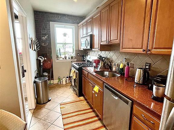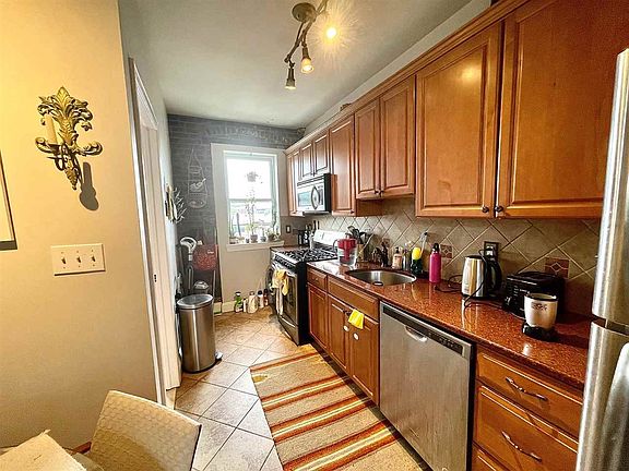 Nicely Renovated, "Loft-Style" One Bedroom Condo with 15 foot ceilings and exposed wood beams. Downtown Jersey City... 7 minute walk to Grove St Path Train. Granite kitchen counter tops, stainless steel appliances, 42 inch designer wood cabinets with moldings and tumbled back splash. Beautiful bathroom. Flowing, sunny layout. Also features oak hardwood floors, exposed brick, central A/C, Laundry Combo unit, terracotta tile, many windows with views and generous closets. Shared deck. Steps to Downtown restaurants, shopping and nightlife. Very cool space in a solid brick building!! Hot water included in rent.