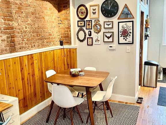 NO Broker Fee This is a very nicely renovated 1 bedroom with a lot of character. It is not your cookie cutter apartment. Located in a very clean well maintained building. This unit features hardwood floors, exposed brick walls, solid wood doors, designer kitchen with custom cabinets, stone countertops, stainless steel appliances including microwave, dishwasher and washer/dryer. Plenty of natural sunlight with central ac/heating. The bathroom is designed with taste and plenty of room to move around. Large common deck is located off the back of the building.