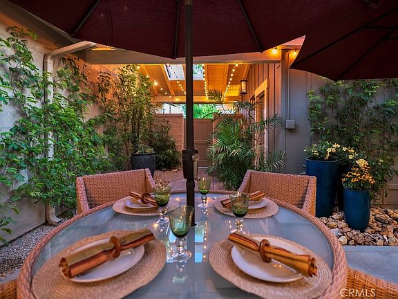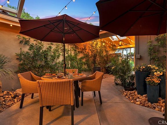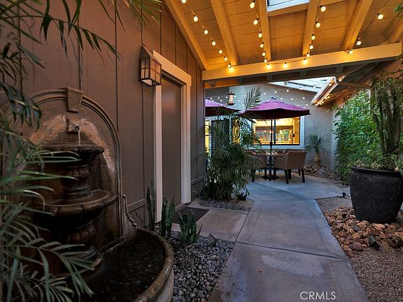Inside, the soaring ceilings and luminous skylights create an airy ambience, while plantation shutters and ceiling fans infuse comfort and style. Travertine flooring guides you through the living areas, while the warmth of plush carpets in the bedrooms offers a soothing touch. Stainless appliances, granite countertops and a glass backsplash adorn the kitchen and breakfast bar with storage for all the chef’s tools. The adjoining dining room and great room are illuminated by natural light. Discover a den adjacent to the kitchen, a versatile space perfect for intimate dinners or productive workdays. The two generous primary suites, thoughtfully separated, provide retreats of relaxation.
