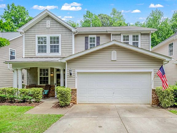 Enjoy this lovely home, centrally located to all Holly Springs has to offer! Open floor plan, flexible living/dining spaces, family room w/built-ins and fireplace, large kitchen w/island and plenty of counter space and cabinets! Generous primary bedroom w/tray ceiling, walk-in closet, large bath w/double vanities, soaking tub and separate shower. Bonus room/office space/playroom and separate laundry room! Beautiful, fenced yard that backs to wooded buffer/greenway/park connector! Patio, covered porch, neighborhood pool! NEW ROOF-6/23, newer Heat Pump/AC compressor, newer water heater, newer fence, garage w/hanging storage. Walk to Veterans Park and close by to Ting Park/Stadium! Welcome home!