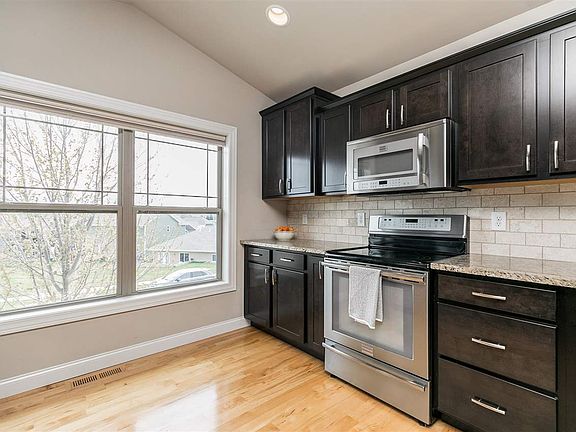 Perfect house on east side IC.Beautiful 4 bdrm,3 baths, corner lot in Stone Bridge Estates. Open family floor plan,9' ceilings,hardwood floors on main.Kitchen with granite counter tops, tiled backsplash,eat-in breakfast area, ample cabinet space,pantry.Custom blinds.Fireplace w blower. Laundry next to master.Deck off of lvngrm, stairs to lower patio and large fenced yard.Family room on lower level with 4th bedroom full bath.Perfect for guests! 2 car garage, one stall-33'deep work bench. Extra car pad.