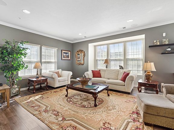 Fully loaded Heartland homes townhome end unit with tons of upgrades. Fabulous Big side yard with additional private off-street parking. This meticulously maintained WEXFORD model home features 3 bedrooms, 2 1/2 baths, finished basement and game room. Situated on Beautiful tree lined oversized lot. Kitchen has larger pantry. Custom Island with built-in wine fridge. Includes Large deck with covered patio and tons of views. Very private. Livingroom is spacious with wall of windows for nature light. Owner's suite offers walk-in closet, tray ceiling, spa like ensuite bath with double vanity sinks, soaking tub, and large Walk-in shower. Two additional bedrooms, a full bath and laundry room complete the upstairs. Tons of storage. Generous 2 car garage, with addition private of street parking attached to the side of the townhome that belong to the unit. Close to everything.