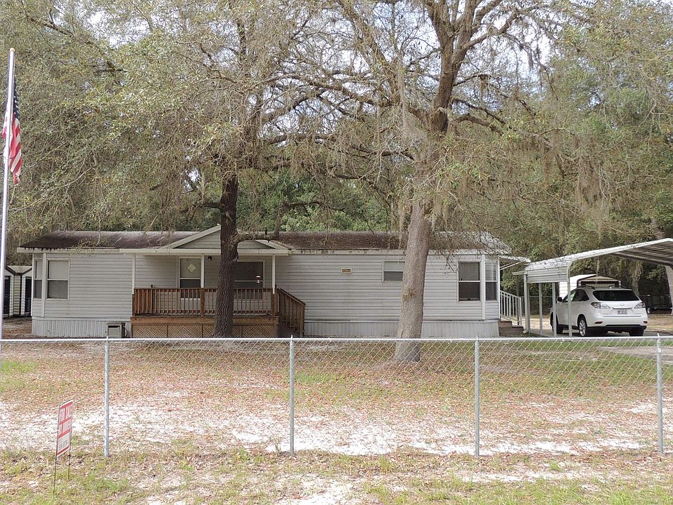 Great location. Fenced lot on paved street. Spacious double wide in need of renovation. 2 space carport with extra concrete slab for additional carport or sheds/workstations. Just outside town of Interlachen for shopping and services. Only a few minutes away from Kenwood Boat Ramp and Rodman Reservoir for great fishing.