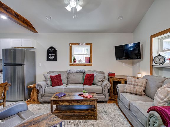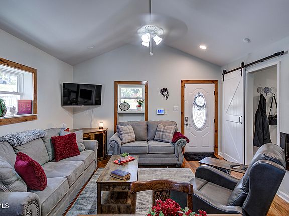 There is led lighting and ceiling fans throughout the home. The wood floors are beautiful, they look as if they have never been walked on. The tile is in immaculate condition. All the room openings have Barn Doors, no space is wasted in this home it is open and welcoming. This home is fully furnished. Most of the furniture was purchase in 2022. The coffee table top lifts up for storage. The corner cabinet is a dog kennel. The TV's stay, the electric wall mounted fireplace can be used just for effect or heating. All the kitchen appliances and the washer and dryer stay. They are all approximately 3 years old. All the counter top appliances present at the showing stay. The cookware, silverware, dishes, cups present at the showing stay. The linens for the bedrooms and bathroom stay. You literately just need to bring yourself and your clothes. Sitting on the deck enjoying some good food from the grill ( already provided) and just enjoying the peace and tranquility. You have to come see how amazing this little home is!!