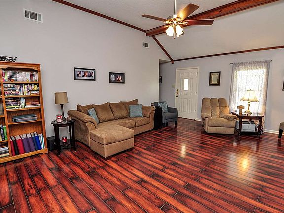 Adorable 3 bedroom 2 bath home in excellent condition on one level. This home features 3 bedrooms 2 baths, 22X15 living room with vaulted ceiling, new flooring, and wood burning fireplace, eat-in kitchen with bay window, tile floor, pantry, electric range, and dishwasher. Backyard is fenced, with covered patio and storage building. Roof is approximately 4 years old. Call for an appointment today. Advanced notice required to kennel dogs.