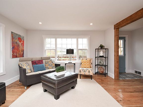 You will be in love the minute you walk in the door with the charm and character of this home! Exposed Spruce beams flank the sides of the living room and dining room doorways & gorgeous rustic wood floors run throughout with wainscoting in the dining area. Open concept kitchen is stunning with gold fixtures, farm house sink, and white cabinets with butcher block countertops & pantry. Navy centre island with concrete surface has lots of prep space and storage with pot drawers and wine rack. New appliances, live edge shelves and bee hive ceramic backsplash goes all the way to the ceiling of this unique home. Updated ½ bath and mudroom on this level as well. Upstairs the 5 pc bath is gorgeous with double vanity ceramic backsplash, linen cabinet and tiled tub with inlay. Master bedroom has cathedral pine white washed ceiling and rolling barn closet door. 2 more bedrooms on this level all with refinished hardwood floors. Unfinished basement with walkout has 7 foot ceiling and potential to create more finished living space. New metal roof & oil tank for many worry free years. Backyard has plenty of room for a detached garage and lots of privacy. Call for a full list of upgrades!