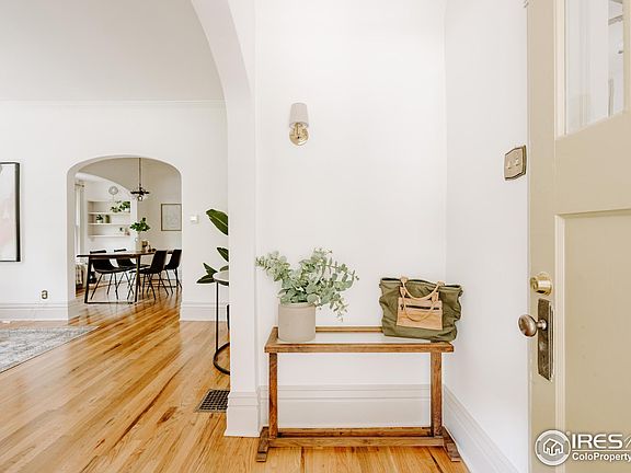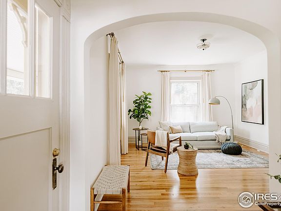 Nestled in Old Town Longmont, this Edwardian home harmoniously combines historic charm with contemporary comforts. Start your day on the east-facing porch, or unwind in the sunlit living and great room areas. The kitchen blends modern convenience with vintage flair, boasting custom cabinetry, granite countertops, and original details. A cozy great room, complete with a gas fireplace and built-in bookshelves, offers views of the tranquil backyard. Upstairs, a spacious primary with hardwood floors awaits, accompanied by an ensuite bath featuring a luxurious jetted tub and separate shower, plus a versatile sitting room. Outside, mature trees shade the expansive yard, perfect for al fresco dining or relaxing. Immerse yourself in a home rich with history yet tailored for contemporary living-a true sanctuary in a coveted Longmont locale.
