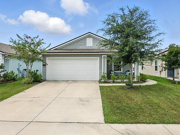 Welcome to 313 Caminha Rd - your cozy and bright 4-bedroom, 2-bath retreat just minutes from I-95 and beautiful St. Augustine beaches. Start your mornings with coffee on the charming front porch and wind down your evenings with stunning sunset views from the living room or backyard. Located in the desirable Entrada community, residents enjoy resort-style amenities including a swimming pool, fitness center, playground, walking trail, basketball and pickleball courts, and two dog parks tailored to different sizes for your furry companions. Don't miss your chance to make this inviting home your own!