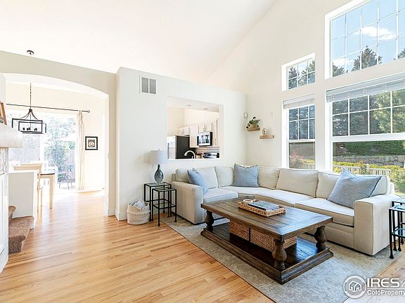 Fresh new price on this beautifully updated home in Indian Peaks West with Main Floor Primary. Tucked into one of the sweetest corners of Lafayette, this home offers the best of all worlds: highly rated Boulder schools, a bike path to Old Town Louisville, and quick drive to flourishing downtown Lafayette. The neighborhood, built around Indian Peaks Golf Course, features tree-lined streets, multiple parks with brand-new playgrounds, and inviting sidewalks buzzing with walkers, bikers, and neighbors. Inside, light pours through south- and west-facing windows, illuminating more than $100K of recent upgrades. At 2,789 sq ft, the home strikes the perfect balance of space and comfort with 4 bedrooms plus a dedicated office/den. The main living area shines with gleaming new hardwood floors and a cozy fireplace framed in herringbone tile with a handsome wood mantle. The kitchen impresses with painted cabinetry, quartz counters, fresh tilework, and stainless GE appliances (2020). The main-floor primary suite feels like a retreat, with large south-facing windows and a spa-like bathroom (2022) featuring double sinks, a soaking tub, and a separate shower. The office/den with French-doors also sits on this level. Upstairs are two good sized additional bedrooms and a shared bath. The brand-new lower level (2024), designed and crafted by a master builder, is a true showpiece. Highlights include an arched statement wet bar, expansive living space with entertainment center, luxury vinyl plank flooring, a stylish bath, and a spacious guest room. With thoughtful sound-dampening features, this level is ready for card games, movie nights, or lively dance parties. Step outside through a new sliding glass door to the generous patio, fenced yard, and fire pit area-all backing to a peaceful green space rather than another home. Additional updates include newer roof and gutters, interior/exterior paint, quartz countertops, about half of the windows replaced (2020), EV-charging capability.