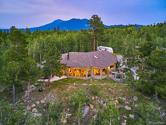 Magical & ever-changing 180 degree views of the back range from Mount Evans to Grays Peak & Torreys Peak to James Peak. This 3 bed / 2 bath single story ranch represents a rare opportunity to acquire property in the desirable & quiet Chalet Park neighborhood. Nestled on a private lot with southern exposure that is surrounded by aspens, expect this property to explode with color during the fall & be frequented by wildlife. Immaculate xeriscaping houses a garden brimming with hand selected perennials & pond. An open floor plan, perfect for entertaining, with floor to ceiling windows from which you can soak in the views & sunshine year round in front of your cozy fireplace. Comfortable master bed room with second gas fireplace adjoins a sunroom spa with hot tub. Vaulted ceilings with skylights throughout. Perfect basecamp for the outdoor explorer, you are nearby to endless recreation opportunities including hiking, biking, & skiing at Eldora. Easy commute to Black Hawk, Golden, & beyond. Very low property taxes, this won't last!