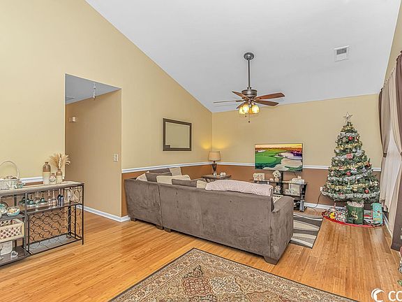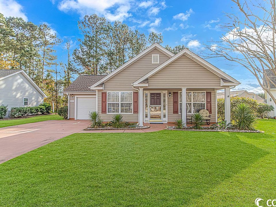 MOTIVATED SELLERS! Nestled in a peaceful cul-de-sac, this charming 3-bedroom, 2-bathroom residence boasts a 1-car attached garage and exudes mature curb appeal from the moment you pull into the driveway. As you approach the front door, a welcoming porch invites you to relax and enjoy the cool South Carolina evenings. Step inside to discover an open concept living area and dining space with vaulted ceilings, and kitchen, creating a spectacular atmosphere for entertaining. The seamless flow of this floor plan ensures a sense of connectivity and spaciousness. The two generously sized guest rooms are conveniently located adjacent to the guest bathroom, featuring a tub/shower combo for added convenience. Enter the primary suite and be greeted by soaring ceilings, a large walk-in closet, and a private ensuite that includes a double sink vanity and a luxurious tub/shower combo. The back yard has a paver patio perfect for barbeques and entertaining. Beyond the comforts of your new home, the International Club community offers an array of amenities, including an outdoor pool, clubhouse, and fitness facility, making it a golfer's paradise and an ideal setting for an active lifestyle. Situated just a short drive from Murrells Inlet, the Marsh Walk, and pristine beaches, this home combines the tranquility of a golf course community with the convenience of being close to popular attractions. Don't miss the opportunity to make this residence your own and experience the best of coastal living in Murrells Inlet! Measurements are not guaranteed. Buyer is responsible for verifying.