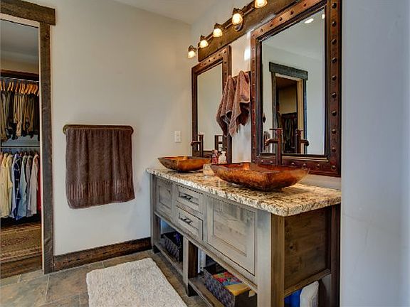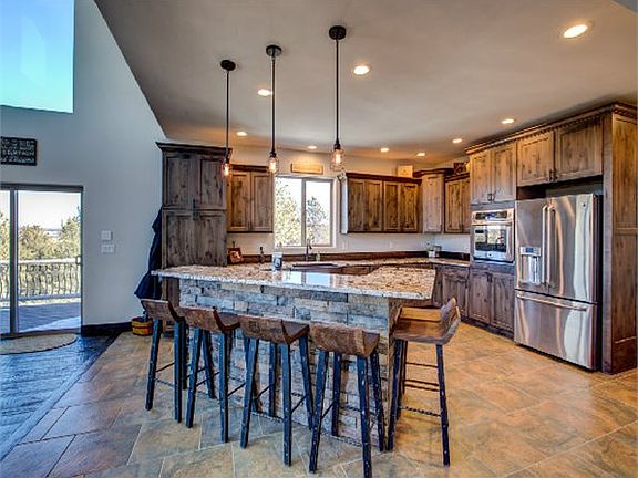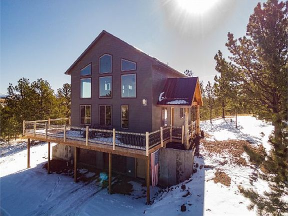 This home features a Great Room that has floor to ceiling windows, custom wood floors, log accents, stone veneer corner gas fireplace with big screen TV, adjoining dining area and kitchen with access to a 10'x78' Trex deck perfect for relaxing. Gourmet kitchen features tile, granite, knotty alder cabinets, stainless appliances and downdraft gas cooktop set in a stunning 6 seat island. Included on this level is guest bedroom with adjoining bath and walk in closet, a 1/2 bath and a laundry/utility area with outdoor access. A spacious upstairs Master Retreat includes a loft/sitting area, outdoor balcony, an attached bath with 4x6 custom shower, walk-in closet and dressing area. This home also includes energy efficient in-floor heat, a lower level bedroom, bath, mechanical room, storage and 2 car garage. Expertly designed for comfort and function this home is carefully tucked away on the property for privacy. The quaint, rustic town of Guffey, CO offers dining, a cafe, saloon, library, Post Office and charter school. BLM and National Forest are close by for additional recreation and fishing opportunities. Only 18 mi. to Historic Cripple Creek and 50 mi to Colorado Springs.
