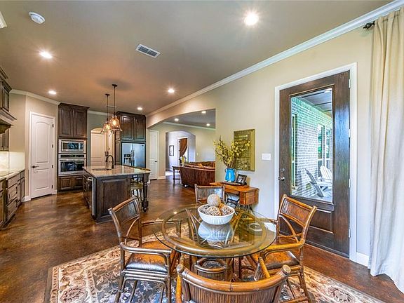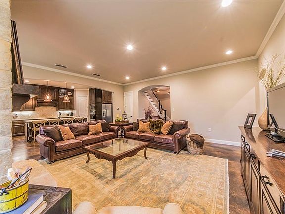 Beautiful custom home on large one-of-a-kind lot within the city limits. Open floor plan is great for family time and entertaining. Large dual-pane Low-E windows along living room, dining room and master bedroom offer picturesque views of garden-like back yard. Second master could be game room. Thoughtful details, including 10' ceilings, 8' doors, upgraded kitchen appliances with induction cooktop, recessed LED lighting, extensive crown molding and millwork, switched electric outlets in eaves, and barrel-vaulted entry ceiling, highlight the attention to detail in this custom home. Exterior upgrades- stone retaining walls, stained cedar and wrought iron fencing, and raised-bed garden. Oversized garage.