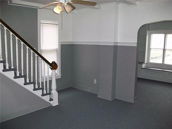 Nice clean, move-in condition 3 bedroom ( large bedrooms),1.1 bathrooms, basement with many updates: vinyl siding, furnace, plumbing, hot water tank, roof, some windows, electric breaker box, carpeting, countertops, water/ sewer pipe to street and freshly painted inside. No garage but a large storage shed and parking on the street and in the driveway-- an affordable nice rehabed home.