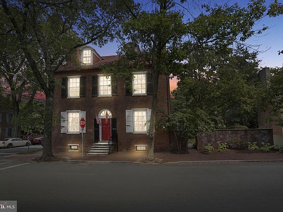 Nestled within the enchanting streets of Old New Castle, this exquisite 5-bedroom, 3.5-bath home, rich in history and meticulously built by Kensey John Jr., presents a rare opportunity to own a piece of the past while enjoying modern comforts. This property encapsulates the essence of timeless elegance. Immerse yourself in the story of this remarkable home, a testament to the craftsmanship and architectural marvels of the yesteryears. Boasting 5 generously sized bedrooms and 3.5 baths, this home provides ample space for both comfortable living and elegant entertaining. 12 foot High ceilings, hand carved crown moldings, and gleaming hardwood floors evoke a sense of grandeur, while the large windows allow natural light to flood in, creating an inviting atmosphere. Upon entering you are greeted with a grand entrance hall. To your left is the dedicated office/library which features built-in shelves, bookcases and one (#1) of the 10 fireplaces. Across the hall you enter into the parlor with a stunning chandelier and fireplace (#2) with King of Prussia marble. Right off the parlor you enter through the double solid mahogany doors into the dining room with another chandelier, King of Prussia marble fireplace (#3), hand carved crown molding with flowers, and a functioning dutch door that leads to the back yard patio. Down the hall is the second parlor with fireplace (#4) off of the parlor is the butlers pantry with an entrance and back staircase to the second floor. While the home proudly retains its historic charm, it seamlessly integrates modern amenities. A gourmet kitchen with top-of-the-line appliances, granite countertops, and a central island is a haven for culinary enthusiasts. Reclaimed wood from the original structure has been incorporated into the fireplace (#5) wall in the eating area. While walking up the gorgeous stairwell to the second and third floor please take note of the hand painted wall by local artist, Nadia Zychal. She was inspired by the Chinese Chinoiserie print as that was a trending art back in the 1800s. You will find 2 fighting blue hens on the first floor as her little mark for Delaware. This floor consists of 3 bedrooms each with their own fireplaces (#6,7,8). The grand bathroom on the second floor has been elegantly redone with a re-configuration for the modern home owner with a nice walk-in closet adjacent and a Laundry room that will exceed your expectations. Making laundry seem-less near the master bedroom. Down the hall off of the back staircase is a loft which is being used as storage right now can be a sitting area, another office, or still storage. The third floor has two other bedrooms with fireplaces (#9 and 10) and a full bath. There is also a great storage room and access to the attic on this level. Storage is not lacking in this home. Rounding out this exquisite home are the wonderful landscape choices and the charm will have you spending many days enjoying and entertaining. One of the most intriguing features of this property is the original carriage house (with electric), a rarity that adds to the allure and uniqueness of the home. Imagine the possibilities – a private retreat, an art studio, a home office, or a charming guest suite. The home is situated across the street from the Amstel House Museum, history and culture are your neighbors. Old New castle is rare in that it holds so much history and yet is still a walkable and livable town.Explore the picturesque streets, visit nearby landmarks, and experience the vibrant community that Old New Castle offers.If you're a discerning buyer seeking a blend of history, luxury, and charm, this 5-bedroom, 3.5-bath residence in Old New Castle is the epitome of refined living. This home is also offering a $500,000 VA ASSUMABLE LOAN with a 2.25% interest. Please do not hesitate to reach out to listing agent. NOT in FLOOD ZONE!