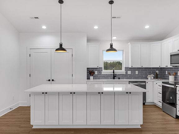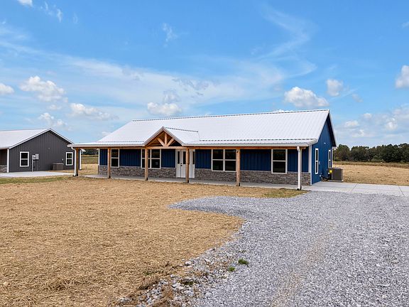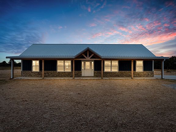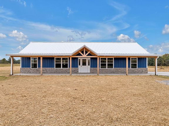 Summertown Metal’s Huntley floor plan gives you an open concept design with 3 bedrooms, and 2 full bathrooms with black leathered granite vanities and tiled shower in master. Spacious kitchen features quartz countertops, large island and pantry. The metal-sided exterior boasts stone accent and includes an 8' x 56' covered porch with cypress posts and decorative gable. Cement parking pad and 12 x 12 back patio pad also included. Create the lifestyle you desire on this LARGE LEVEL 2+ ACRE LOT that gives you all the space you need for a woodworking shop, garage, outbuildings, or garden! ** Taxes are estimated and for the land only. *