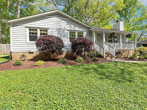 Welcome to this beautifully updated ranch nestled in the heart of Cary! The charming curb appeal is complemented by lush landscaping leading to a welcoming covered front porch with a convenient keyless entry. Upon entering, you're greeted by warm, durable luxury vinyl floors that seamlessly flow throughout the entire home. The spacious family room is centered around a stunning brick gas fireplace, creating the perfect ambiance for relaxing and unwinding after a long day. Adjacent to the family room, the bright dining room is elegantly framed with a classic chair rail, making it an inviting space for family gatherings and entertaining guests. The chef-inspired kitchen is a true standout, featuring sleek stainless steel appliances, rich granite countertops, a central island for added workspace, and a cozy window bench, ideal for enjoying your morning coffee while basking in natural light. The serene owner's suite offers two closets and boasts a stunning board-and-batten accent wall that adds a touch of character. The luxurious en-suite bath is a retreat of its own, with an updated vanity and a beautifully tiled walk-in shower, complete with eye-catching penny tile accents. Two additional generously sized bedrooms provide ample space for family or guests, while the fully remodeled second bathroom offers modern finishes and style. Step outside to your private backyard oasis, where you'll find a spacious deck, raised garden beds perfect for planting, a firepit with a charming pergola for cozy evenings, and a convenient shed for extra storage. The fully fenced backyard, coupled with serene, wooded views, offers the privacy and tranquility you've been searching for. This home is located in the highly sought-after MacDonald Woods neighborhood, which features a community park, playground, and nearby greenway trails for outdoor enjoyment. You'll also appreciate the proximity to The Shoppes of Kildaire, Wellington Park Shopping Center, Waverly Place with Whole Foods, WakeMed Cary Hospital, and easy access to US-1 and I-40 for quick commutes. Don't miss your chance to own this delightful ranch that blends modern updates with serene living in a prime Cary location!