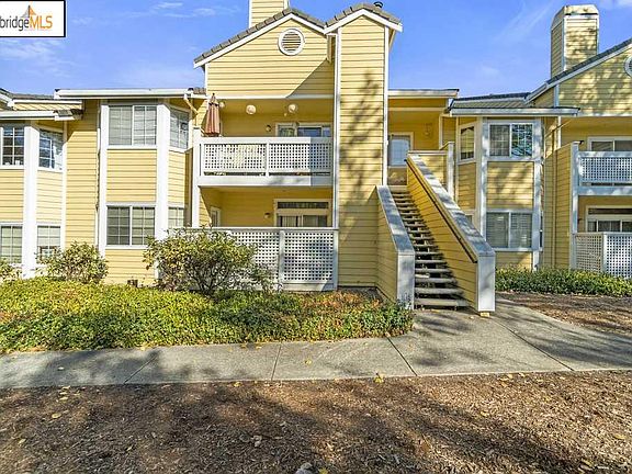 Bring your vision, 1st level condo with one car detached garage. Main Bedroom has his and hers closet space/private bathroom (en suite). Added features fire place, storage closet on patio and in unit washer & dryer hookup. Close to I80, Highway 4 and BART. 20 miles to San Francisco or Oakland, shopping and restaurants close b During the winter ducks are roaming in the ponds nearby. Complex has pool, spa, club house and exercise room. Exterior of building is well kept and polished. HOA includes water and garbage.