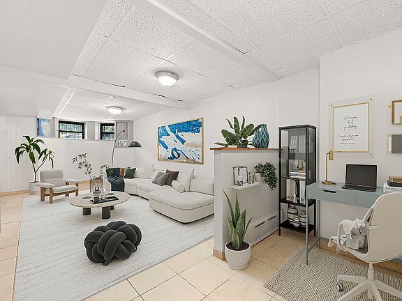 The basement is nicely finished and used as a recreation room , office or flex space with a separate entrance from the street. There is a large laundry room and a full bathroom. There is plenty of storage on this level as well.