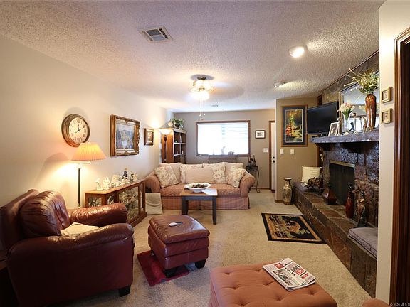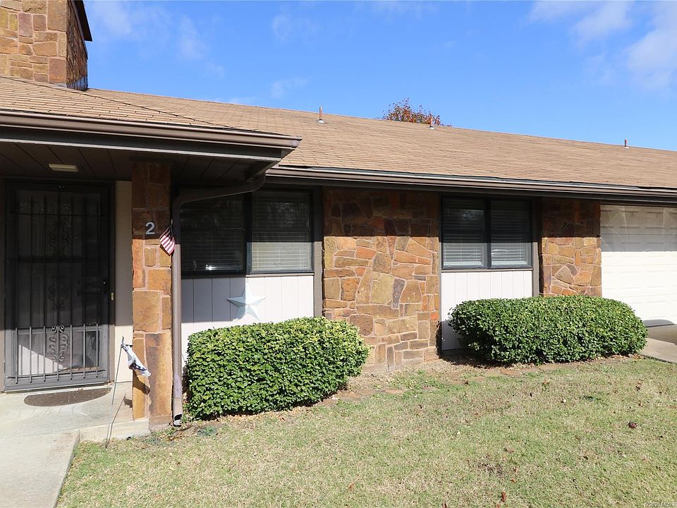 Spacious 2BR Condo with fireplace/gas logs, 1 car garage with Storm shelter. New Microwave and flooring. Dishwasher new in 2016. Walk-in-shower and 2 inch faux blinds throughout.
