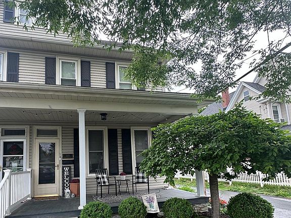 This beautifully maintained and updated semi-detached home exudes warmth and character, perfect for creating lasting memories. Step inside to discover a welcoming atmosphere, highlighted by 9' ceilings and an open floorplan. With its timeless design and contemporary updates, this home built circa 1923 offers the best of both worlds. The main level features a living room, family room, updated kitchen with stainless steel appliances and a formal dining room, making this home ideal for entertaining. The second floor offers 3 bedrooms and a full bath. The 3rd level boasts a bedroom with a cathedral ceiling, numerous closets and full bath. Enjoy the comfort of ceiling fans throughout, ensuring a pleasant breeze on warm days. The partially finished basement provides additional living space, perfect for a playroom, home office, or fitness area. The spacious lower level laundry has a tile floor, shelves and a sink. Enjoy summer evenings sitting on the covered front porch or relaxing on the patio overlooking the fenced rear yard. The oversized detached garage not only provides parking but also additional storage space, catering to all your needs. Located in the heart of Palmyra Borough, this home is conveniently located within walking distance of restaurants, shopping, schools and public transportation.
