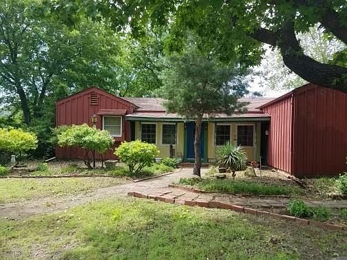Nestled perfectly on a lot adorned with beautiful trees, this charming Bartlesville residence exudes a comforting sense of home from the moment you arrive. The living room boasts convenient built-in shelving, while the three generously-sized bedrooms offer ample storage space. The kitchen, with its unique blend of styles, seamlessly transitions into a laundry room that overlooks the backyard. Additionally, the property features a separate hobby/office area, storage facilities, and a garage. This home presents an ideal opportunity for those with a passion for remodeling, as it holds incredible potential for transformation into a tranquil owner's sanctuary. Take pleasure in the captivating landscaping, whether it's the gentle glow of morning sunshine or the tranquil ambiance of the evening. So, grab your coffee or wine, and let this house become your cherished haven! It's worth mentioning that the house was designed in the shape of an airplane and was constructed during the era of Phillips Aviation. It holds special significance as it was once celebrated by Wiley Post on numerous birthdays. Please note that the buyer must verify schools, and the property is being sold as-is.