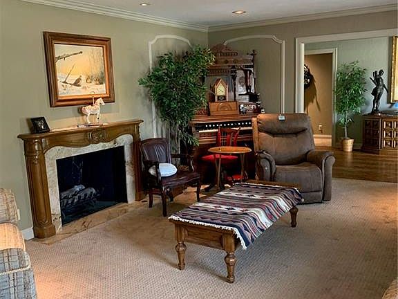 BACK ON THE MARKET . NO FAULT OF SELLERS.. Spacious corner lot with mature trees, circle drive, Brick fence with wrought iron trim. Many features include 3 living areas, 2 dining areas, 2 HVAC systems, top of the line stainless steel appliances, granite countertops. Large center island, built in hutch. Lots of cabinets, butler's pantry. There's an office/study with floor to ceiling bookshelves & covered storage, 3 fireplaces in formal living, dining & master bedroom. 5 cedar lined closets, storage galore, 3 built in china hutches, wet bar, wine cooler, ice maker, skylight. In the Master there's a huge master bath with walk in glass & tiled shower, marble counter tops, carpet & wood floors. Basement has floor to ceiling built in cabinets and can also serve as a "safe room". Many more features that you must see for yourself to appreciate!