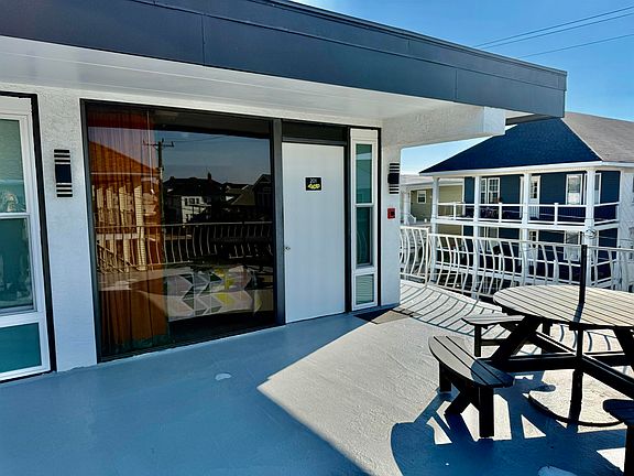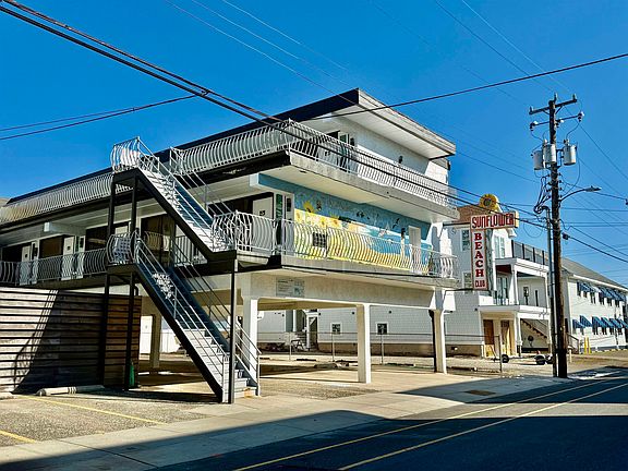 This Top Floor Corner Condo with a semiprivate balcony with water views is part of the Sunflower Beach Club located just one block from the famous Wildwood Beaches and Boardwalk. Here are some key features: It's a cozy studio unit with a full bathroom, cooktop stove, microwave, refrigerator, two Full beds and a dining area. The condo comes with heat and wall air conditioning for year-round use. The resort offers a pool, a parking spot, laundry facilities. Low Condo fees which include all utilities: gas, electric, water, sewer, cable, and Wi-Fi. This condo can generate a nice income for weekly or daily rentals or maybe just keep it for yourself to enjoy the Beach Life! Includes Assigned Parking for Compact Car.