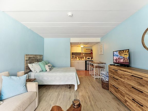 Welcome to this FANTASTIC studio-style condo perfectly located just one block from the world-famous Wildwood BEACHES and BOARDWALK! Situated in the sought-after Sunflower Beach Club Condominiums, this top-floor unit combines beachside charm with convenience. Enter to find a stylishly decorated space featuring updated flooring, a remodeled bathroom, and NEW appliances—all creating a fresh, modern vibe. The light-filled open layout offers a relaxing retreat, while the BALCONY provides the perfect spot to unwind and take in a view of the POOL. Community amenities include a pool, laundry facility, and one assigned parking space for your convenience. This LOCATION is PERFECT with everything Wildwood has to offer nearby: ONE block to the BEACH and BOARDWALK, Ocean Oasis Water Park & Beach Club, exciting boardwalk attractions, and even a nearby dog park for your furry friends. With LOW condo fees covering water, sewer, electric, Wi-Fi, and cable, this unit checks all the boxes. Whether you’re seeking a stylish vacation getaway, year-round usage, an exceptional investment with a strong rental history, or your own beachside escape, this condo offers the BEST of COASTAL living in one of New Jersey’s most vibrant shore towns!