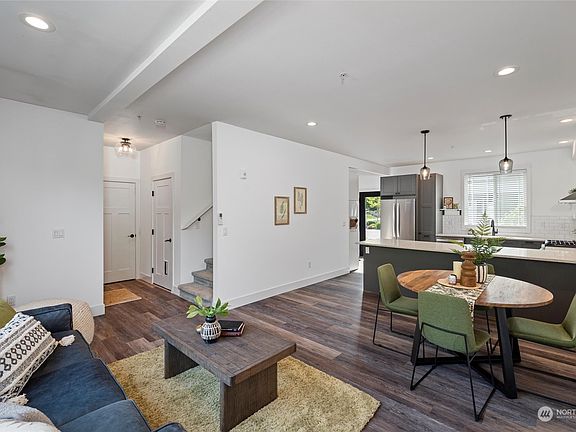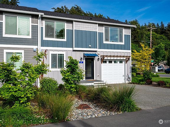 Built in 2020, this home has everything you could desire. Main floor has 9 ft ceilings, allowing plenty of natural light to fill the space, creating an inviting and open atmosphere. The Chef's kitchen offers expansive quartz countertop space, eat-up bar, stainless appliances, gas cooktop, & a wine rack. LPV floors in the main living areas, and carpet in the bdrms. Primary suite is a true retreat, w/a walk-in closet and en suite bthrm +a walk-in tile shower, dual sinks, and tile floors. A heat pump ensures efficient heating and A/C for your comfort all year. Enjoy your patio and covered front porch. Situated adjacent to a park w/ play area and basketball court, conveniently located close to I-5, Mt. Vernon, shopping, restaurants, & co-op.
