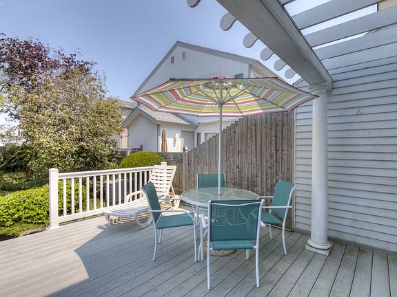 Original owners. Townhome has had very little use w/no wear and tear. Customized townhome featuring entry foyer with cathedral ceiling and sky lights, country Kitchen w/designer tiles on backsplash & hardwood flooring w/spacious dining area w/window seat, 1/2 bath, Living Rm w/fireplace and sliders to a large deck that overlooks an English garden nicely landscaped; 2nd floor consists of a master suite w/full bath and 2 additional BRs w/Bath. Off street parking for 2 cars. Lot size: 40x90 plus 20x40