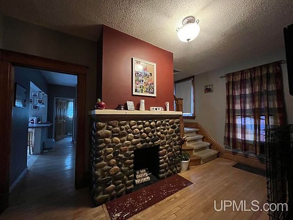So much character in this turn of the Century home! Enter from the enclosed front porch large enough to chill and relax in. Once inside you’ll find a sitting room with a fireplace and separate living room. The kitchen and dining area are in the back leading to a large deck for your morning coffee and a fenced in yard. ½ bath on main floor. 3 large bedrooms upstairs with a full bathroom and laundry room. 3rd floor is one room (great for storage or a summer bedroom as there is no heat to it). Full unfinished basement great for storage. Some great features include hardwood floors, original trim, high ceilings, vinyl siding, central air. Great location in downtown Munising, perfect home base!