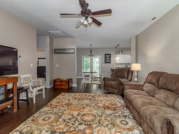 Charming like new home with a dream backyard! Upon entering the home you will be with 9 ft ceilings in the spacious great room and luxury wood look flooring throughout the main living area. Located off the great room is a flex space with french doors that makes a perfect office, playroom or dining room. The kitchen is also spacious and features custom tiled backsplash and is open to the breakfast area. The split floorplan situates a large owner's suite with separate soaker tub and shower, dual sinks, and large walk in closet on one side and on the opposite end of the home you will find two additional good sized rooms and remaining bath. Outside features a covered rear porch perfect for entertaining and a fully landscaped large rear yard that is fenced in and backs up to green space for privacy with a beautiful view!