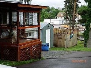 One large storage barn with second floor, second shed is all metal. Borough Alley is used by owner and the neighbor only.Side decking,hardwood floors under the living room carpet, real wood paneling in family room, rear enclosed sun porch, first floor 1/2 bath, 2nd floor laundry. Plumbing and electrical has been updated, new windows.