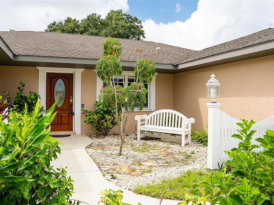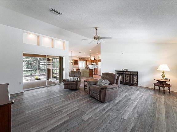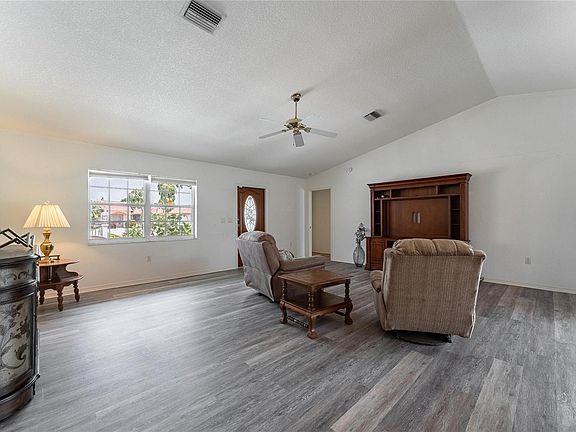 Price Reduction! Affordable home in Burnt Store Meadows just waiting for you to put your finishing touches. New wood laminate flooring in living, dining, master bedroom, and hallways. Home has been replumbed. Soaring ceilings and an open floor plan welcome you as you enter. Private split bedroom floor plan allows the owners to retreat to one half of the home, and their guests have the other bedrooms and bath of their own. The kitchen features solid wood kitchen cabinets and a new stove with a crowd-pleasing counter for everyone to gather. Living area and bedroom/den look out to a peaceful screened in lanai garden. Bring your coffee or favorite adult beverage and walk outside to enjoy your private garden oasis, with full screened cage and undercover seating area. Live the Florida lifestyle as the sun rises or the evening sky unfolds, watching your garden grow. Burnt Store Meadows is a neighborly community, individuals choose to live here because the location offers large lots and open spaces, yet provides easy access to Burnt Store Road, US 41, Interstate 75. Minutes to Punta Gorda with all its history and civic activities, parks, and biking trails, farmer's market, art festivals, dining, and healthcare services. Look for the cutest home on Gold Tree and know instantly you've found your Florida dream home.
