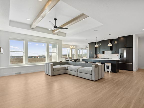 **Accepted Offer; Waiting for Contingencies to be Released, Accepted Back-up Offers** Relaxed luxury describes this stunning, ranch-style home that has been thoughtfully designed and beautifully finished with great attention to quality construction, elevated design, and practical function. The style is best described as transitional, which is evidenced by the combination of contemporary and traditional features that give this home a luxurious, yet comfortable feel. For example, the sleek, modern appearance of the staircase balustrade and the black kitchen cabinetry being paired with the paneled fireplace wall, custom window seats, and antique brass fixtures makes this home a perfect marriage of the two distinct design traditions. The list of features is long and includes nearly 3,300 sq ft of finished space; four bedrooms; three baths; a primary suite that is located on its own across the house from the other two main floor bedrooms; light and bright feel throughout with tall ceilings and expansive windows that allow natural light to cascade through this home on both the main and lower levels; abundant counterspace; generous room sizes; plentiful storage; a drop-zone, laundry room with pet station and half bath just inside from the oversized 3-car garage; built-in sound system with Bluetooth connectivity capabilities; a second, lower tier of the lower level houses a room built with the intention of installing a golf simulator, but can also function as a kids hangout, home office, or theatre room; a lower level bar with a casement window that lifts up to create a walk-up bar that is accessible from outside for those enjoying the pool; lower level full bath has both an interior and exterior door for further accommodation of the pool area that keeps control of the traffic into the house from the pool; an expansive deck that creates the feel of an in-ground pool while still allowing for plenty of yard space to enjoy the outdoors; and screened-in porch as well as a lower level covered patio. Come see for yourself the quality, beauty and value being offered at this price!