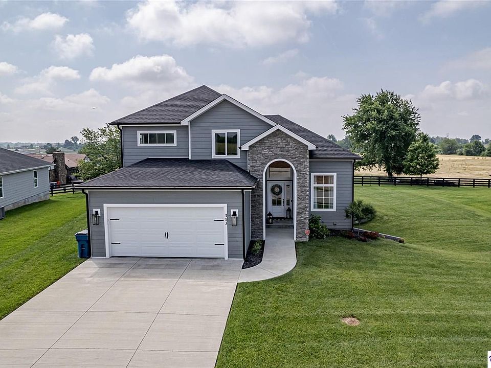 Welcome to this breathtaking custom-built, one-owner home in the highly sought-after Summit Creek subdivision! This remarkable residence offers an open concept floor plan with an abundance of natural light that flows beautifully from the backyard into the living spaces. With large vaulted ceilings and 10' tall ceilings in the living room, this home exudes grandeur and elegance. As you step through the front door, you'll be greeted by a magnificent two-story foyer. To the right, a study bathed in natural light and featuring tall ceilings provides the perfect space for a home office or library. The white oak hardwood floors seamlessly flow throughout the home, guiding you into the expansive living room, dining area, and gourmet kitchen. The kitchen is a chef's dream, boasting custom cabinetry from Walters Cabinets, luxurious quartz countertops, and top-of-the-line stainless steel appliances. Whether you're hosting a dinner party or enjoying a quiet meal with family, this space is designed for both function and style. The daylit basement is an entertainer's paradise, complete with a guest bedroom and bath, a large family room, and an entertainment area. This versatile space offers endless possibilities for relaxation and recreation. Upstairs, the large primary bedroom is a serene retreat with an ensuite bathroom that features a walk-in shower, double vanities, and a spacious walk-in closet. Two additional bedrooms and a bathroom complete the second floor, providing ample space for family and guests. You will love the backyard with its massive covered back porch, perfect for entertaining. The private backyard, with no rear neighbors, offers a tranquil escape and plenty of space for outdoor activities. So many upgrades in this one-of-a-kind home—you simply must see them for yourself. Don't miss the opportunity to own this incredible home in Summit Creek. Schedule a showing today and experience the perfect blend of luxury, comfort, and style!