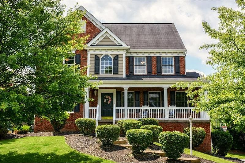 Talk about curb appeal! This charming four-bedroom home sits on a beautifully landscaped cul-de-sac lot in Valleybrook Farms. As you enter the home, take note of the crown molding detail and hard wood floors that flow throughout the entryway, kitchen, and family room. An abundance of windows fill the home with natural light and allow you to fully appreciate your beautiful backyard. The open concept kitchen features a morning room, stainless steel appliances, and a six burner gas stove. You will be proud to entertain guests in your large dining room boasting stately judges paneling. The family room features a gas fireplace and ample seating room. The second floor offers four bedrooms and two full baths, including a large master suite with sitting area, two walk in closets, and an en suite bathroom with soaking tub. Just imagine relaxing on your covered front porch! This sidewalk community also offers a playground and is located in the esteemed Mars Area school district. Welcome home!