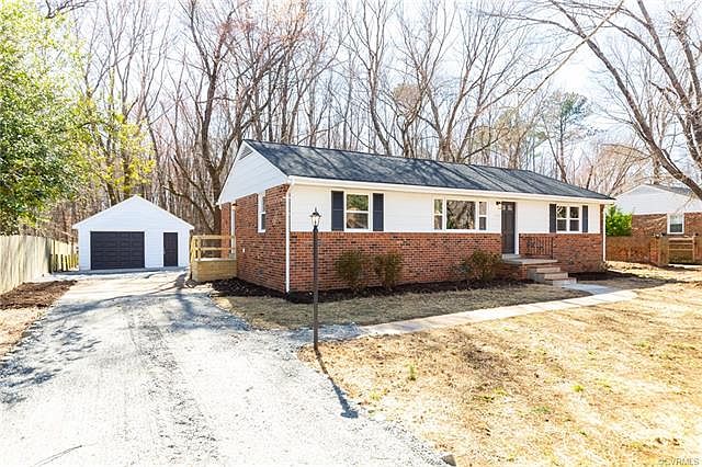 Like new brick rancher with detached garage! Situated on a lovely park like lot that backs to a natural area for privacy. New dimensional roof, new energy efficient windows, new heat pump, new electrical panel as well as all new interior finishes! All new paint and gorgeous refinished hardwood floors throughout the home. Great open floor plan with a spacious living room with a large picture window, open concept dining room and totally new kitchen! Kitchen offers new classic white cabinetry, granite counters, subway tile backsplash and updated lighting. Laundry/mud room with washer/dryer hook ups, new marble like tile floor, additional entry door convenient to driveway and an all new powder room just off of the laundry room/kitchen. 3 spacious bedrooms with large closets, wood floors and ceiling fans and a beautiful new full hall bath with tub/shower, tile floor, new vanity and lighting. Detached garage with electricity, pedestrian door, and auto-opener as well as a detached shed. Mature trees and a great level lot! This home is move in ready and a must see.
