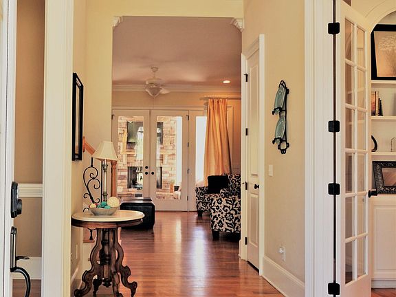 - Living Room: Fireplace, Floors-Hardwood, French Doors, Molding, Books, Entertainment Center, Ceilings-High (over 9 Ft), Ceiling Fan, Recessed Lights