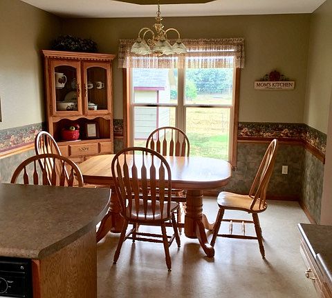 I have been the second owner of this 1997 property for 17 years. Many improvements have been added to increase the value and save on utilities expenses. The crawl space is fully insulated and its perimeter drain tile feeds into a sump pump. A vapor barrier seals out the moisture. Contained in this crawl space is the prepared area for a tornado shelter that descends from the master bedroom closet. The exterior on three sides has 2 inches of additional rigid insulation attached doubling the R-value. New Masonite siding replaced the old vinyl siding. A sprinkler system waters the almost weed-free yard. Six mature trees are nice. The back deck is newly stained. The back yard overlooks a pasture. This back acreage is not to be sold anytime soon, per the owner. The topsoil garden is 12 x 24 feet. The attic has one thermostat-controlled exhaust fan to aid on hot summer days. There is one access to the attic via the garage. (Step ladder required). There is storage in the garage overhead. The garage floor is Epoxy-coated and easily cleans. All appliances come with the house. Linoleum is located in the two bathrooms and kitchen. The rest of the house is laminate flooring. This house has been pet free and smoke free for our stay since 2001. All concrete is in good clean condition. In 2011 we replaced the roof, gutters, heat pump and air filtration system and the entire ductwork system. This place is very neat and very clean.