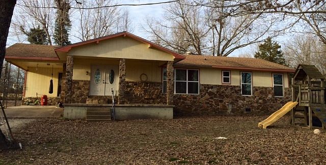 Spacious home in the rolling hills of Lawrence County offers plenty of privacy & seclusion. This rock and frame home offers 3 bedrooms, 2 baths, large kitchen with all appliances, dining area with picture window, living room with vaulted ceiling, separate laundry/mud room plus bonus room that would make a great office. Amenities include a Jacuzzi in the master bathroom, central heat/air, covered front porch, hardwood floors throughout most of home, carport, and chain link fenced yard. The 5 acres is mostly open yet has lots of trees. It offers a 15x20 storage building with concrete floor and a 24x28 barn with stalls that is perfect for horses or small animals. Includes 2 established food plots since there is great deer hunting in this area of the Ozarks. Located 7 miles from town and 3/4 mile off blacktop