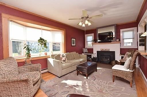- Liv Dscrp: Exterior Access, Fireplace, Flooring - Hardwood, Window(s) - Bay/Bow/Box, Ceiling Fan(s), Closet, Wood / Coal / Pellet Stove