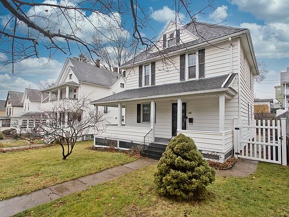 This spacious Colonial was built in 1900, features a lovely wrap around front porch, formal entry/foyer and spacious rooms. Original hardwood floors in the living room and dining room, off the dining room is a updated 1/2 bath. The kitchen features an original tin ceiling which was just painted, granite counters, upgraded cabinets and laminate floors. Upstairs, the full bath was remodeled and you have 3 nice sized bedrooms. The home has a great fenced in yard with some fruit trees. The gas boiler is approx 6 years old. Come see us Sunday January 15th 2023 12:30-2pm for the first Open House.