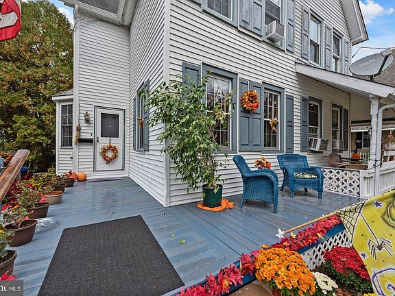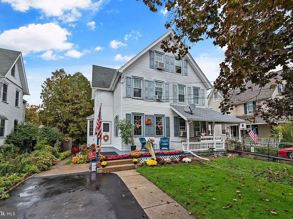 Low Taxes and Great Schools! Don't miss this charming Moorestown twin located across from Zelley Park. Beautiful landscaping surrounds the entire grounds of this lovely home! From the front porch, you will enter the dining room or sitting room, which features a large bow window and built-in bookshelves. Adjacent is an inviting living room with large windows that bring in lots of natural light. A large eat-in kitchen offers plenty of counter space and cabinetry, and there is a convenient laundry/mud room with attached powder room which provides access to the fenced back yard and patio. Upstairs you will find an updated full bathroom, two large bedrooms, and a smaller one which is currently used as an office. The third floor is bright and sunny – a great 4th bedroom or bonus room. Plenty of extra storage can be found in the full dry basement. Outdoors enjoy views of the park from the front porch or the peaceful privacy and lovely plantings of the yard and patio.