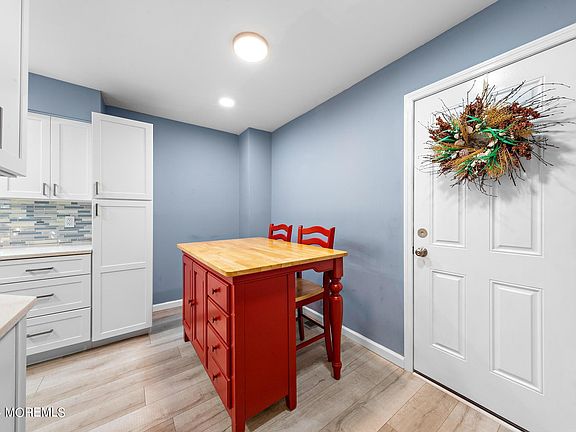 The main level boasts a renovated eat-in kitchen w/modern amenities including wood cabinets, quartz countertops, SS appliances, soft-close drawers, 2 pantries & a beverage nook. The open-concept dining & living room areas feature LVP flooring, a cozy wood-burning fireplace & abundant light from finishes like recessed lighting, skylights & vaulted ceilings.