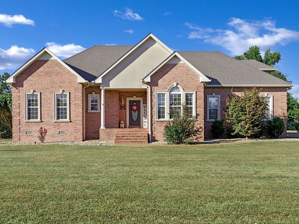 Welcome to this stunning single-level home set on a spacious .88-acre lot. Inside, you'll find a formal dining room perfect for hosting, a beautifully designed kitchen with tile flooring, double ovens, and a cozy breakfast nook for casual mornings. The expansive living room features hardwood flooring & trey ceiling, creating a warm and inviting atmosphere. This home boasts an office space ideal for remote work, and the master suite is a true retreat with double trey ceiling and its inviting bath featuring french doors, a separate tub and shower! For added flexibility, there’s an oversized bonus room—perfect for a media room, play area, or extra living space. Don’t miss this opportunity to enjoy comfortable, elegant living in a peaceful setting! Nice patio for entertaining! Storage building remains!