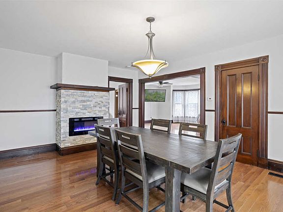 This stunning 1900 New Englander has over 4000 square feet and has been completely renovated throughout. This home boasts 8 bedrooms, 3 baths, with hardwood floors throughout the main floor, and refinished flooring on the second level. Enjoy the spacious, well lit kitchen with beautiful cabinets and a large island. Relax in the expansive living room or gather in the dining room in front of the remodeled fireplace. The home has a newer roof, as well as new windows, doors, plumbing, fixtures and lighting throughout. Enjoy summer and fall evenings around the stone fire pit in the back yard, and relax by the multi- level garden beds in the front yard on the brand new trex deck. Both the back and front yard have had new greenery and extensive mulch and marble landscaping. The long driveway has plenty of space for parking, along with a two-bay garage.