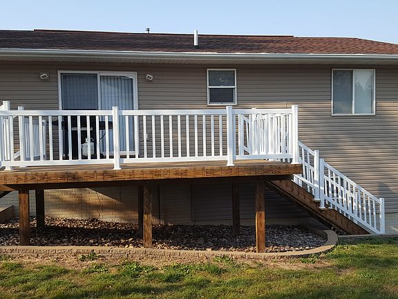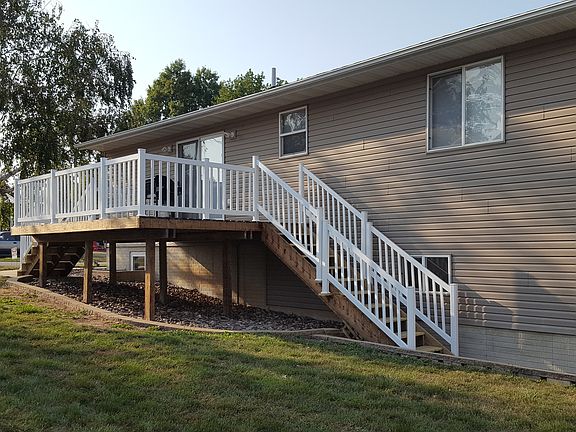 Open floor plan. 2 blocks from Schools. 2 blocks from city park. Close to downtown businesses. All new vinyl stair , and deck railing. New shrubbery.