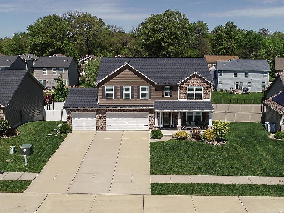 Located in the MASCOUTAH SD, this 5 bed/4 bath home checks all the boxes! Over 3100 sq ft of living space! Finished Basement with 5th bed & full bath! 3 living areas! Fenced yard! 3 car garage! Golf Cart Community! Open concept main level has dream kitchen w/center island, granite countertops, staggered cabinetry & walk-in pantry-Separate formal dining & powder room. Head upstairs to landing (21x11) used as 2nd living area. Primary ensuite has vaulted ceiling, walk-in closet, dual vanities, soaker tub & separate shower-3 additional beds, guest bath & large laundry w/ utility sink complete upper level. Lower level has been finished w/3rd living area, rec room, bedroom w/egress, full bath & walk-out. Enjoy the upcoming summer sun on the large, covered composite decking & fenced yard. Updates include: Retaining wall, firepit, trash area paved & fenced, backsplash, landscaping & trees added. Close to parks & walking trails. 5 minute walk to Wingate Elem & 10 min drive to Scott AFB! Additional Rooms: Mud Room